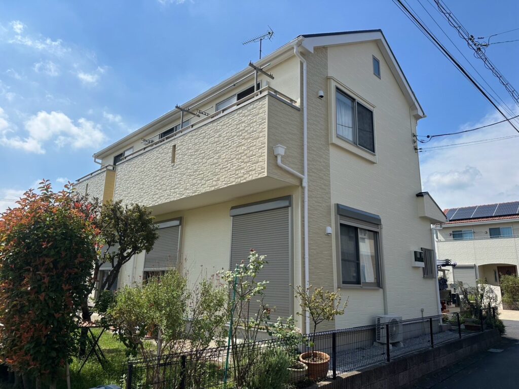 | 施工内容 | #外壁塗装 #軒天塗装 #雨樋塗装 #破風板塗装 #鼻隠し塗装 #シャッターBOX塗装 #換気フード塗装 #水きり塗装 #コーキング工事 #ベランダトップコート |