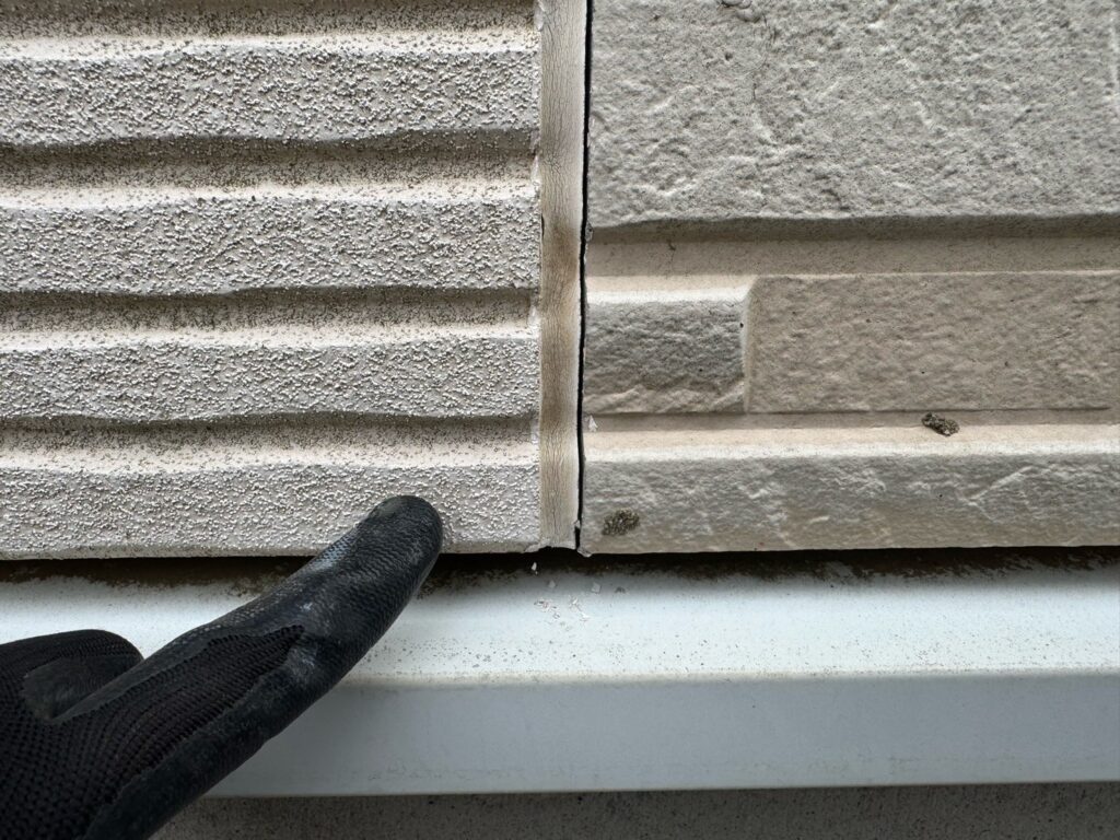【ご提案】:今回が初めての塗装工事でした。建物を確認させていただくと、目地コーキングのひび割れや外壁の剥がれが確認できました。このまま放っておくと劣化が悪化してしまいます。目地コーキングは打ち替え、外壁剥がれ部は補修と塗装工事にてご提案をさせていただきます。
