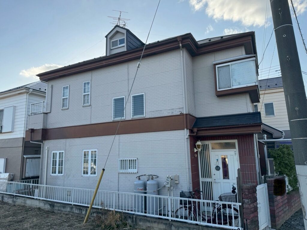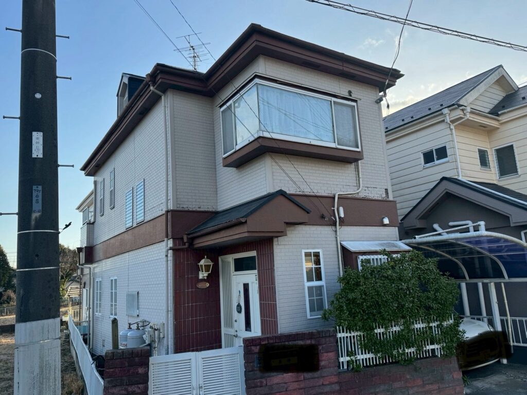 【お客様のご要望】:築30年の建物です。数年前に屋根塗装を行い、外壁はサイディングの貼り付け工事を行いました。(他社様にて)外壁の剥がれが所々発生して雨漏りなどが心配です。口コミを拝見して評判が良かったのでお問い合わせをしました。