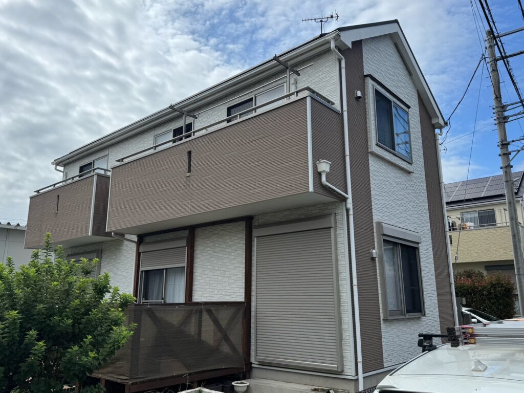 | 施工内容 | #外壁塗装 #軒天塗装 #雨樋塗装 #破風板塗装 #鼻隠し塗装 #シャッターBOX塗装 #換気フード塗装 #水きり塗装 #コーキング工事 #ベランダトップコート |